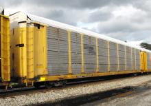 TTGX 254439 is seen in CSX Q216-26 at Cumberland MD on 6/27/13. Rack was built as a unknown CR ML2G class rack and is now NS 26111, a NS FB545 class rack. Rack is also still lettered as a ML2G class rack.