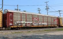 TTGX 254683 is seen in the consist of CSX Q217-08 at Newark, DE on 8/8/14. Rack number is CR 1694, built 12-84, rebuilt 10-97 and is now owned by CSX.