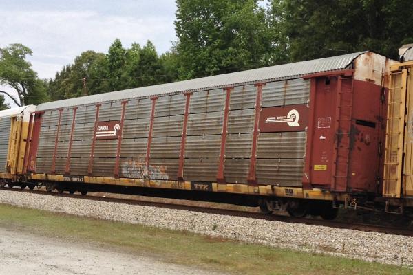 TTGX 255018 is seen in the consist of NS 11Nat Baden (East Conway), PA on 6/28/25. Rack number is CR 1446 and was built as an CR ML2E class rackin 5-86. It was then rebuilt and repainted NS in 11-03 at TRA-L. Rack is now classed FB542 by NS but is also stenciled ML2E.