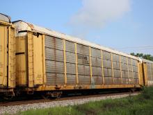 TTGX 255076 is seen in the consist of CSX Q217-15 at North Branch, MD on 6/15/22. Rack number is CR 1582 and was built 12-85. It was then rebuilt and repainted NS in 7-03.