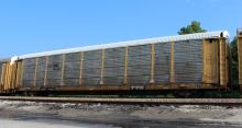 TTGX 256037 is seen in NS paint in the consist of CSX Q217-11 at Elsmere, DE on 7/11/14. Rack number is CR 1596, built 12-85, rebuilt and repainted NS in 2-03. Rack is now classed FB541 by NS, but is also still lettered ML2D.