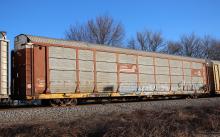 TTGX 256195is seen in the consist of CSX Q217-27 at Newark, DE on 12/27/20. Rack number is CR 1656, built 12-84 (stenciled 6-75 probably flat), rebuilt 7-95 and is now owned by NS.
