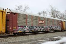 TTGX 603655 is seen in the consist ofCSX Q410-14 at Boothwyn, PA on 2/16/21. Rack number is CR 6724, built 10-88 and is now owned by NS.