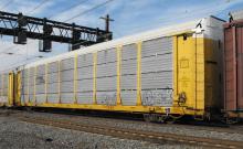 TTGX 604120 is seen in NS paint on 30A at Newark DE on 1/24/12. Rack was built in 5-90 as CR 8214 as a ML2L class and was rebuilt, repainted NS, renumbered to NS 27646 and reclassed FB548 in 2-09.