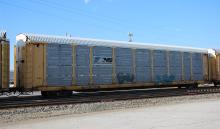 TTGX 604132 is seen in the consist of CSX Q371-11 at Elsmere, DE on 4/11/20. Rack was built as CR 8266, a CR ML2L class rack, in 4-90. It was then rebuilt, repainted and renumbered to NS 28048 in 8-19 by MEI ESTL. Rack is now classed FB548 by NS. Photo by Chris Carangi.