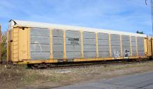 TTGX 604602 is seen in the consist of CSX S216-10 at Elsmere, DE on 10/11/15. Rack was built as CR 8211, a CR ML2L class rack, in 5-90 and was rebuilt, repainted and renumbered to NS 27655 in 5-08. Rack is now classed FB548 by NS.