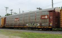 TTGX 920008 is seen in the consist of CSX Q216-25 at Newark, DE on 6/27/14. Rack number is CR 10466, built 7-95 and is now owned by CSX.