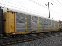 TTGX 940194 is seen in the consist of NS 36A at Newark, DE on 9/28/10. Rack was built as a unknown CR ML2M class rack and was renumbered to NS 27066 and classed FB549 by NS.