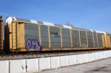TTGX 940211 is seen in the consist of CSX Q217-28 at Lansdowne, MD on 12/28/19. Rack was built as a unknown CR ML2M class rack in 4-91, then rebuilt, repainted and renumbered to NS 27070 in 4-05. Rack is now classed FB549 by NS, but is also stenciled ML2M.