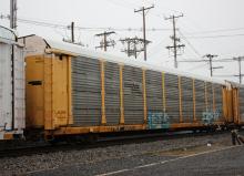 TTGX 940310 is seen in the consist of CSX M217-28 at Newark, DE on 12/28/24. Rack was built as an unknown CR ML2M class rack in 4-91. It was then rebuilt, repainted and renumbered to NS 27083in 7-05 at MEI ESTL. Rack is now classed FB549 by NS but is also stenciled ML2M.