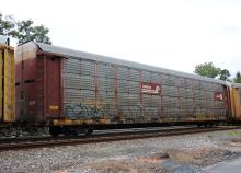 TTGX 941135 is seen in the consist of CSX Q216-13 at St. Denis, MD on 8/16/20. Rack number is CR 10168, built 9-94 and is now owned by CSX. Photo by Chris Carangi.