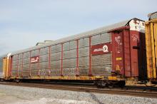 TTGX 941993 is seen in the consist of CSX M217-22 at Savage, MD on 4/22/23. Rack number is CR 9496, built 2-93, and is now owned by CSX.