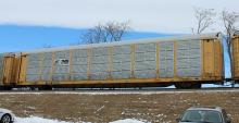 TTGX 942036 is seen in the consist of CSX Q216-20 at Newark DE on 2/23/15. Rack number was built as CR 9533, a ML2L class rack, in 2-93 and the rebuilt, repainted and renumbered to NS 28074 in 4-14. Rack is now classed FB552 and has the horeshead logo panel.