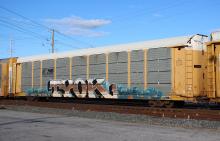 TTGX 942399 is seen in the consist of CSX Q216-24 at Elsmere, DE on 11/27/21. Rack was built as CR 9411, a CR ML2L class rack, in 2-93. It was then rebuilt, repainted and renumbered to NS 28597 in 2-16 by MEI ESTL. Rack is now classed FB552 by NS.