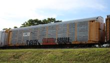 TTGX 942727 is seen in the consist of CSX M216-25 at Newark, DE on 5/27/23. Rack was built as CR 9613, a CR ML2L class rack, in 2-93. It was then rebuilt, repainted, and renumbered to CSX B-9613 in 3-20 by MEI ESTL. I have now photographed this rack in both CR& CSX paint.