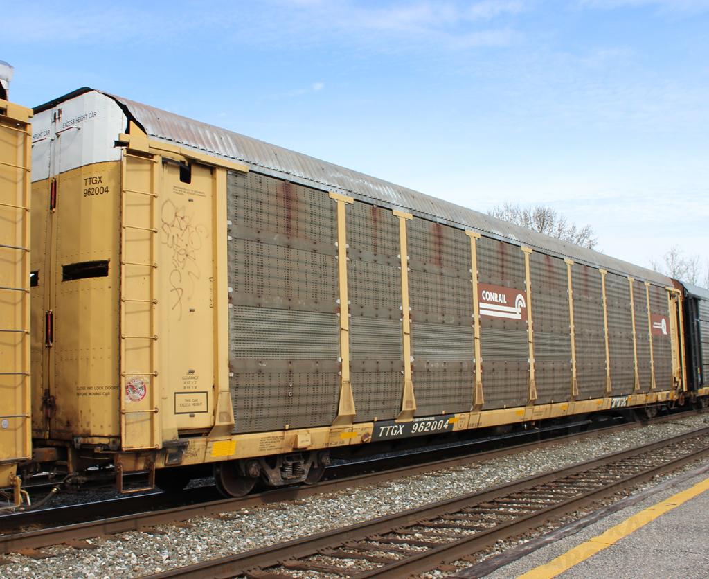 TTGX 962004 is seen on Q217-13 at Saint Denis, MD on 3/13/15. Rack number is CR 8081, built 4-90, rebuilt 2-98 and is now owned by CSX. Note car has the brown Q panel.