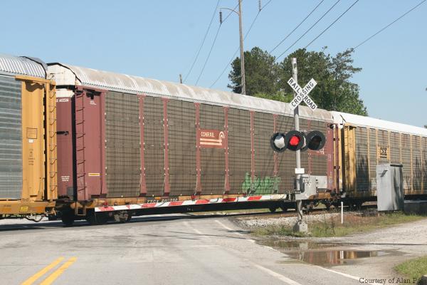 TTGX 962846 is seen in the consist of CSX Q249-13 at Cumberland, MD on 6/14/14. Rack number is CR 6731, built 10-88 and is now owned by NS.