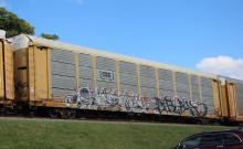 TTGX 963042 is seen in the consist ofM217-08 at Newark, DE on 10/8/22. Rack number is CR 9383 and was built asa CR ML2L class rack in 2-93. It was then rebuilt and repainted CSX in 6-15 by MRW-WR.