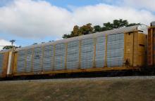 TTGX 963753 is seen in the consist of CSX Q216-05 at Newark, DE on 8/8/21. Rack was built as CR 1775 a CR ML2L class rackin 8-81 (incorrectly stenciled 2-71). It wasthen rebuilt, repainted and renumbered to CSX B-1775 in 3-20 by TrinityRail (THCG) as part of Job C1013. I have now photographed this rack in both CR & NS paint.