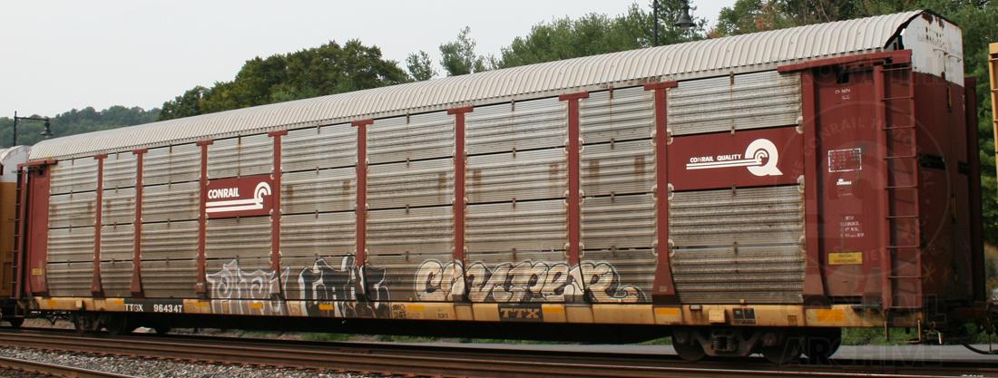 Previous Next Flatcar TTGX 964347 is seen with CR class ML2L rack #9474. Photo By Donnie Lee Equipment Type TTGX Bi-Levels Year 2011 Original Date 9/3/11 Collection CRHS Conrail Photo Archive Contributions