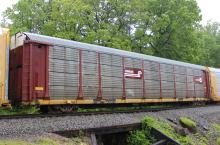 TTGX 964371 is seen in the consist of CSX L224-13 at Wilmington, DE on 5/13/17. Rack number is CR 9661, built 3-93 and is now owned by NS.