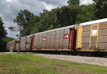 TTGX 964676 class ML2L follows a line of autoracks NB at the Flat Shoals Rd grade crossing in Union City, GA.