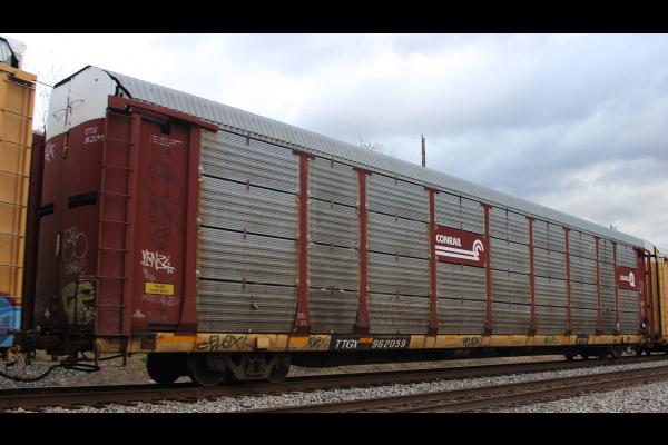 TTGX 965045 is seen in NS 36A at Newport, DE on 12/16/13. Rack number is CR 9543, built 2-93 and is now owned by CSX.