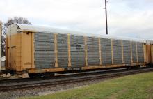 TTGX 965208 is seen in the consist of NS M1J at Richland, PA on 12/22/18. Rack was built as a unknown CR ML2L class rack in 11-92. Then was rebuilt, repainted and renumbered to NS 27224 in 5-05. Rack is now classed FB551 by NS.