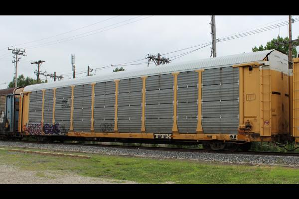 TTGX 965346is seen in the consist of CSX Q216-18 at Newark, DE on 8/21/21. Rack number is CR 8492, built 10-93, rebuilt 1-98 and is now owned by CSX. Note the rack has black CR lettering.