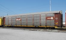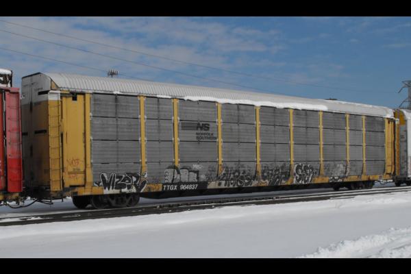 TTGX 965497is seen in the consist of CSX Q216-19 at Elsmere, DE on 3/21/10. Rack number is CR 10454, built 7-95 and is now owned by NS.