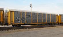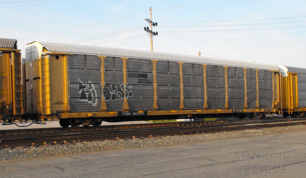 TTGX 965585 is seen in NS paint on Q216-15 at Elsmere DE. Rack was built as an unknown CR ML2L class rack in 1-92. It was then rebuilt, repainted and renumbered to NS 27198 in 3-05. Rack is now classed FB550 by NS.
