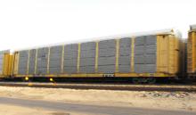 TTGX 965585 is seen in NS paint on Q217-18 at Elsmere DE on 7/18/12. Rack was built as an unknown CR ML2L class rack in 1-92. It was then rebuilt, repainted and renumbered to NS 27198 in 3-05. Rack is now classed FB550 by NS.