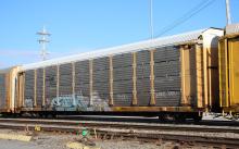 TTGX 965585is seen in the consist of CSX Q216-06at Elsmere, DE on 5/9/22. Rack was built as an unknown CR ML2L class rack in 1-92. It was then rebuilt, repainted and renumbered to NS 27198 in 3-05. Rack is now classed FB550 by NS.