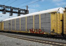 TTGX 965592 is seen in the consist of NS 36A at Newark, DE on 7/21/10. Rack was built as a unknown CR ML2L class rack in 12-92, then was rebuilt, repainted and renumbered to NS 27231 in 4-05. Rack is now classed FB551, but is still stenciled ML2L.