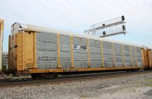 TTGX 965651 is seen in the consist of CSX Q217-12 at Savage, MD on 5/12/17. Rack was built as CR 0619, a CR ML2L class rack, in 3-93 then was rebuilt, repainted, and renumbered to NS 28577 in 5-15. Rack is now classed FB552 by NS.