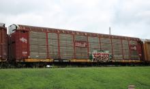 TTGX 966051 is seen in the consist of CSX Q216-30 at Newark, DE on 8/2/20. Rack number is CR 1436, built 5-86 and is now owned by CSX. Photo by Chris Carangi.