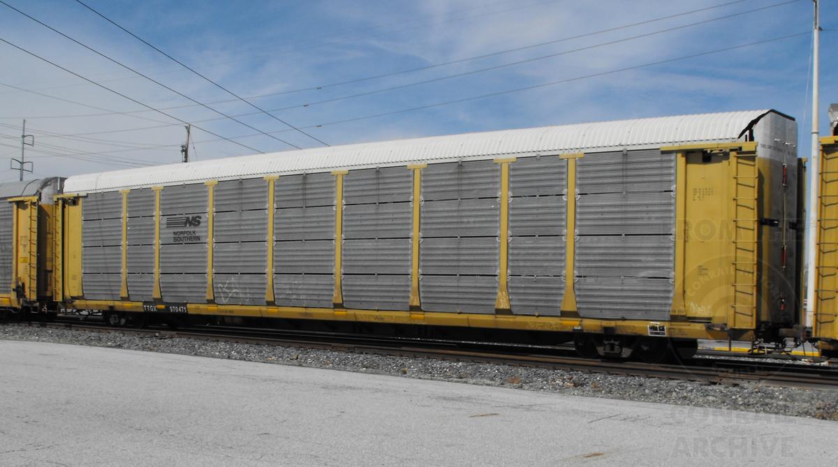 TTGX 970471 is seen in the consist of CSX L216-31 at Elsmere, DE on 4/1/14. Rack was built as a unknown CR ML2L class rack and is now classed FB554 by NS.