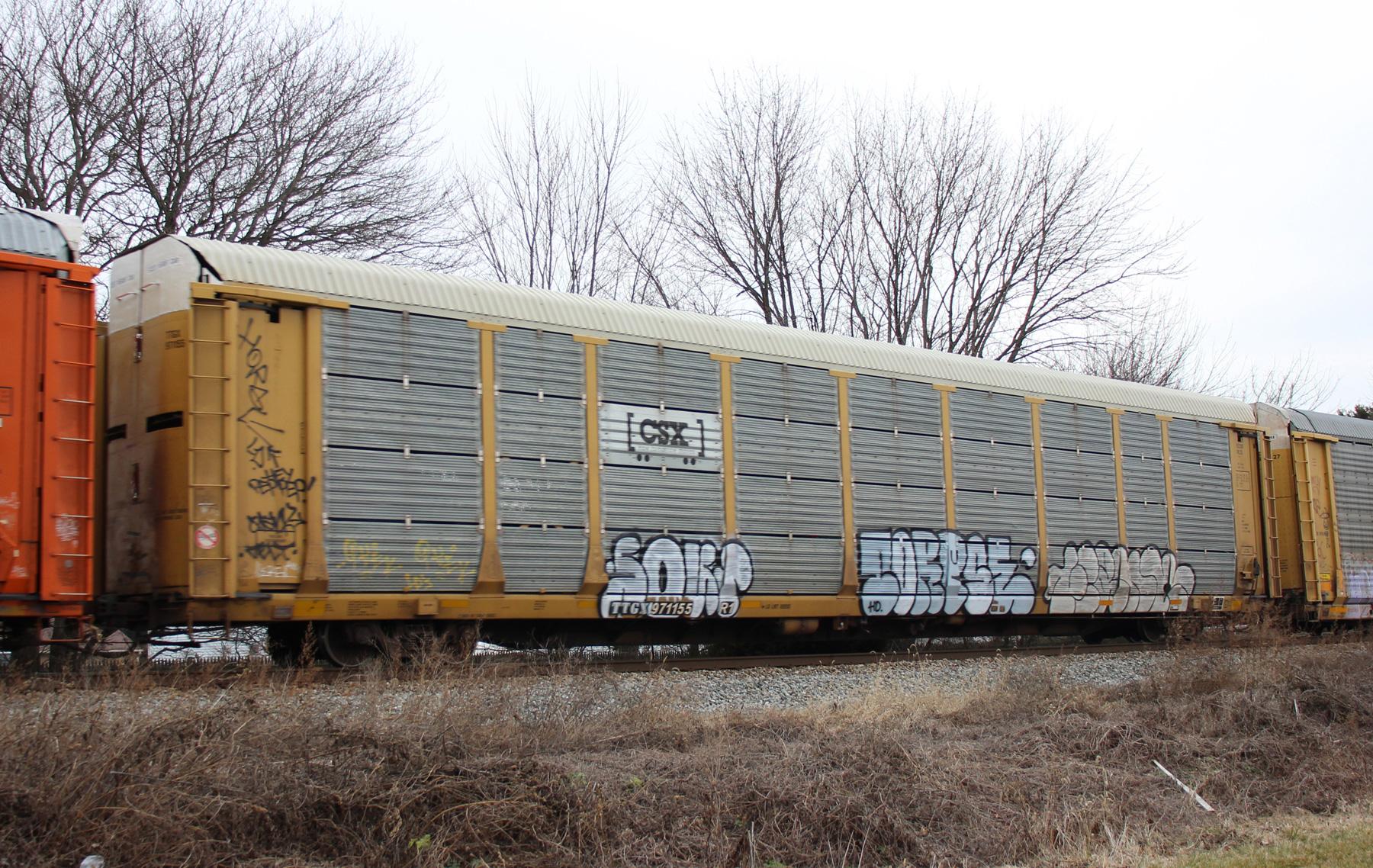 TTGX 971155 is seen in the consist of CSX Q216-30 at Newark, DE on 2/1/20. Rack number is CR 10220, built 9-94 and was rebuilt and repainted CSX in 1-14.