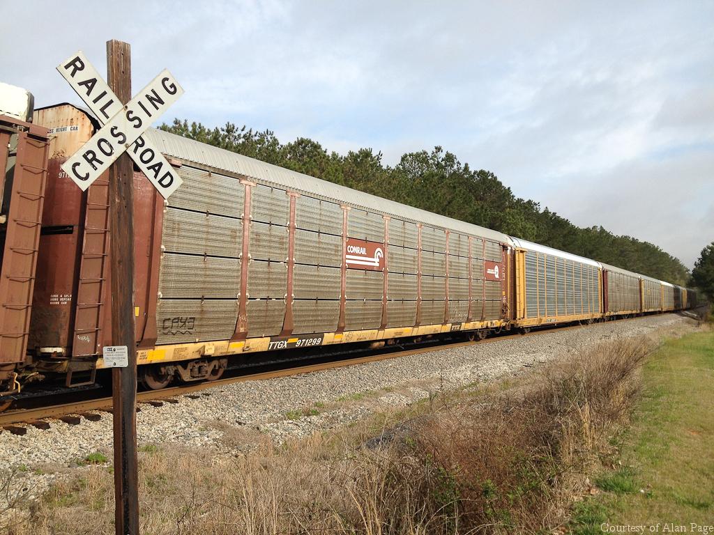 Previous Next TTGX 971299 in a line of autoracks heading southbound at Peachtree City, GA on April 3, 2014. Photo By Alan Page Equipment Type TTGX Bi-Levels Year 2014 Original Date 4/3/14 Collection CRHS Conrail Photo Archive Contributions