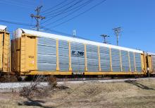 TTGX 971836 is seen in the consist of CSX Q217-02 at Newark, DE on 4/2/15. Rack was built as a unknown CR ML2L class rack in 12-94. It was then rebuilt, repainted and renumbered to NS 28132 in 11-14. Rack is now classed FB556 by NS.