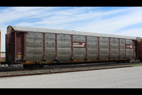 TTGX 973925is seen in the consist of NS 36A at Baden (East Conway), PA on 6/24/21. Rack number is CR 9993, built 3-94 and is now owned by NS.