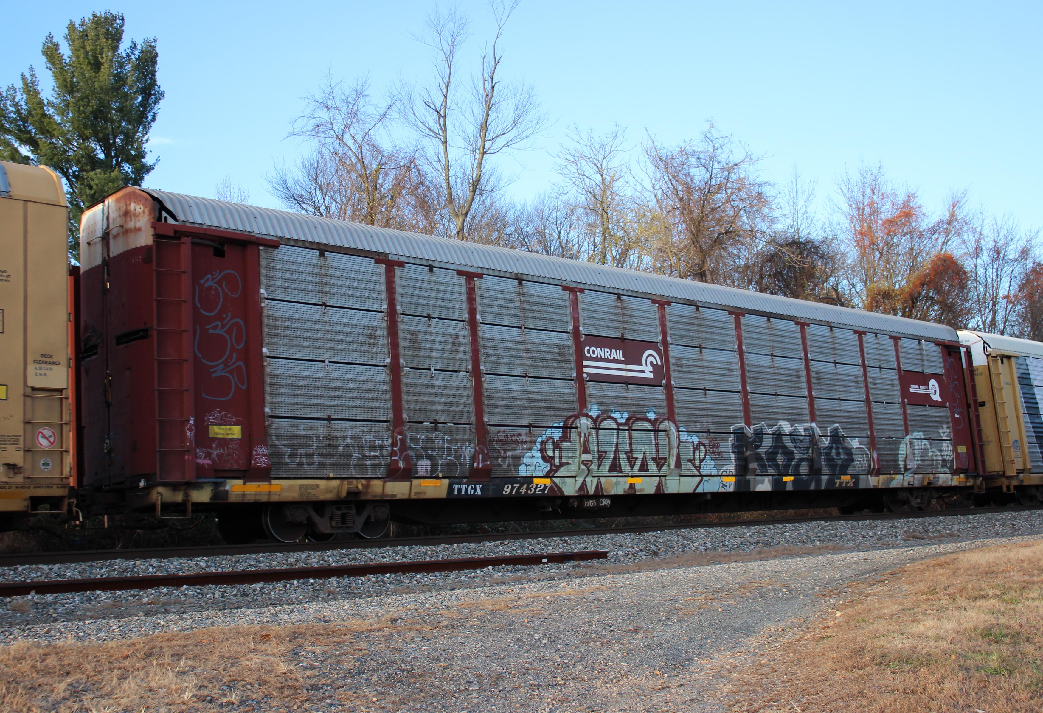 TTGX 974327is seen in the consist of CSX X216-28 at Perryville, MD on 11/29/20.Rack number is CR 9986, built 3-94 and is now owned by CSX.