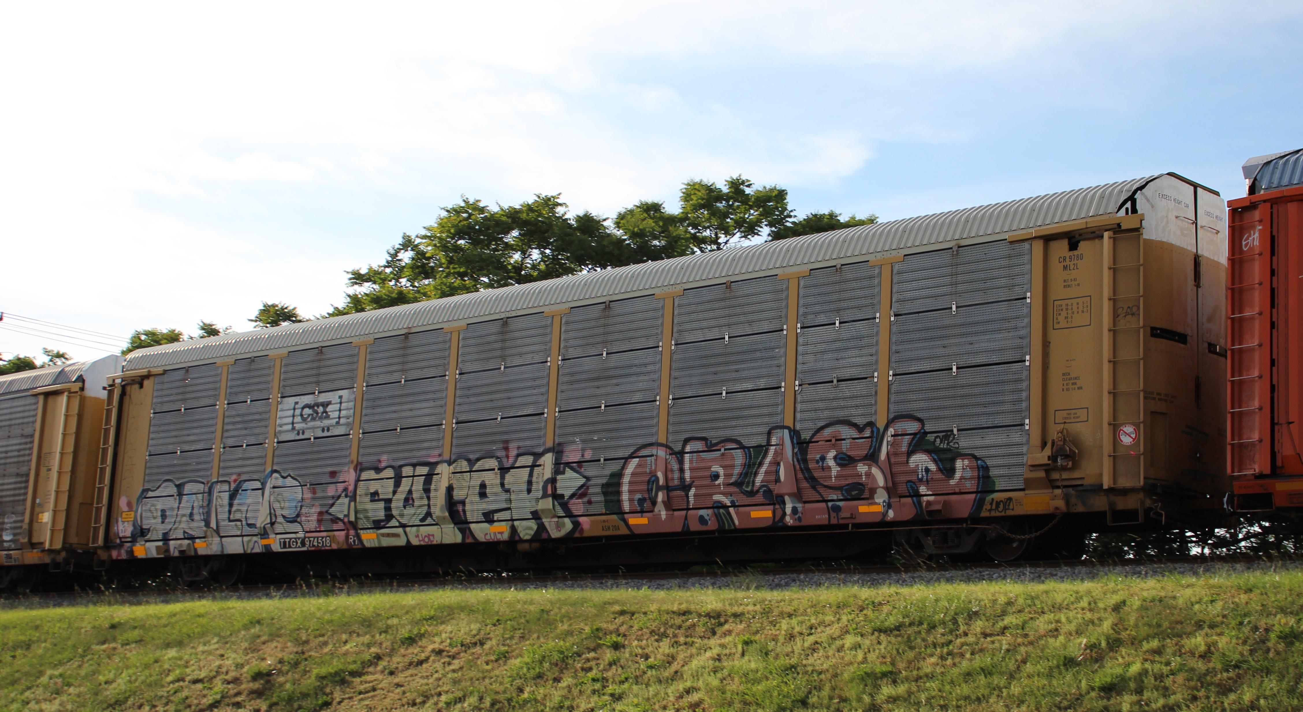 TTGX 974518 is seen in the consist of CSX M216-25 at Newark, DE on 5/27/23. Rack number is CR 9780 and was built as a CR ML2L class rack in 9-93. It was then rebuilt andrepainted CSX 1-16. I have now photographed this rack in bothCR& CSX paint.