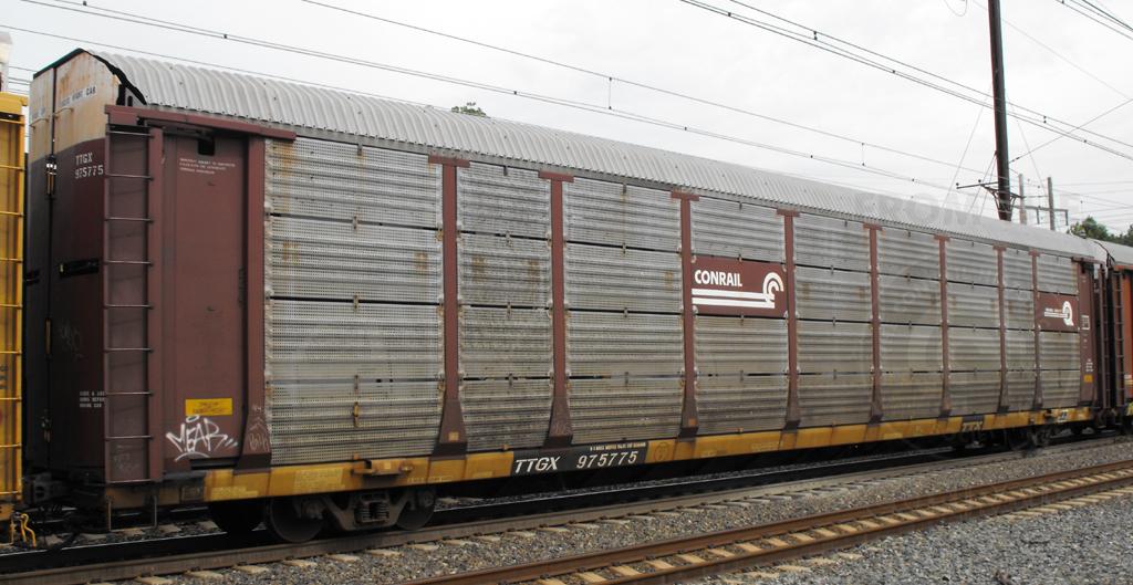 Previous Next TTGX 975775 is seen on 36A at Newark DE on 9/8/09. Rack number CR 10242. Photo By Chris Carangi Location Details Amtrak's Northeast Corridor Equipment Type TTGX Bi-Levels Year 2009 Original Date 9/8/09 Collection CRHS Conrail Photo Archive Contributions