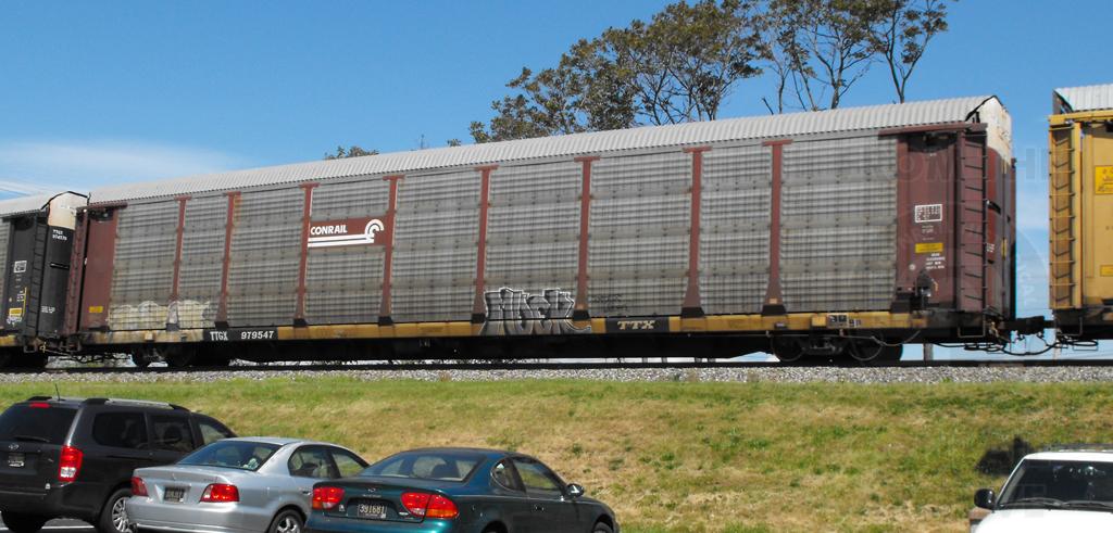 TTGX 979547 is seen on Q216-23 at Newark DE on 4/25/12. Rack number is CR 10948, built 9-97 and is now owned by CSX.