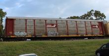 TTGX 980085 is seen in the consist of CSX Q217-09 at Newark, DE on 10/9/15. Rack number is CR 9730, built 9-93 and is now owned by NS.