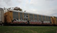 TTGX 980440is seen in the consist of CSX Q217-30 at Newark, DE on 10/30/21. Rack was built as CR 9802, a CR ML2L class rack, in 10-93. It was rebuilt, repainted and renumbered to NS 28578 in 4-15. Rack is now classed FB553 by NS.