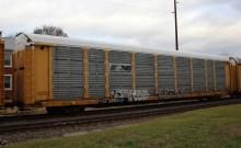 TTGX 980517 is seen in the consist of NS M1J at Richland, PA on 12/22/18. Rack was built as a unknown CR ML2L class rack in 9-93. Then was rebuilt, repainted and renumbered to NS 27965 in 2-13. Rack is now classed FB553 by NS.