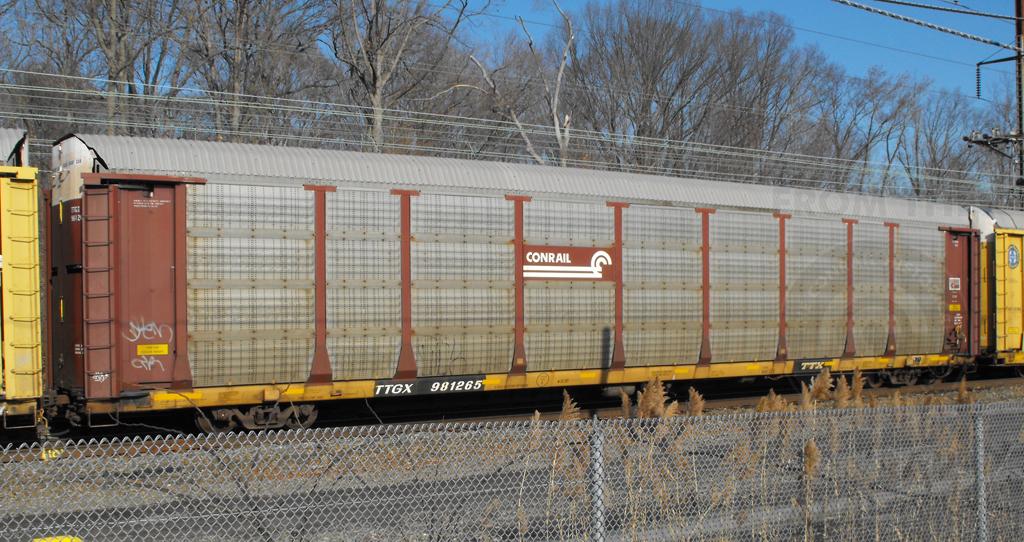 TTGX 981265 is seen in NS 36A at Newport, DE on 12/16/13. Rack number is CR 10916, built 9-97 and is now owned by CSX.