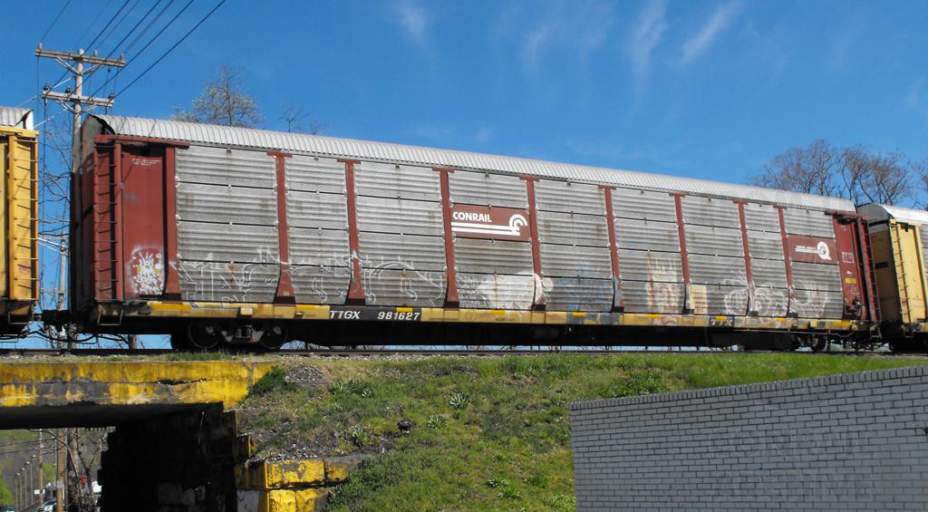 Previous Next TTGX 981625 is seen on Q217-05 at Newark DE on 4/7/12. Rack is now owned by NS. Photo By Chris Carangi Location Details CSX Philadelphia Sub Equipment Type TTGX Bi-Levels Post Conrail Owner Norfolk Southern Year 2012 Original Date 4/5/12 Collection CRHS Conrail Photo Archive Contributions
